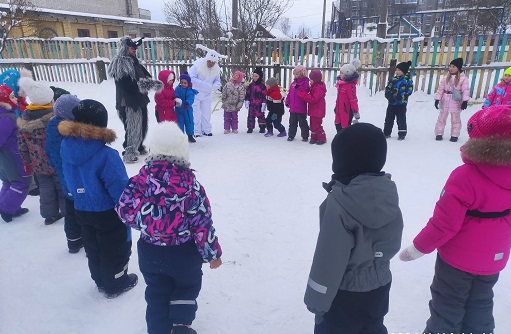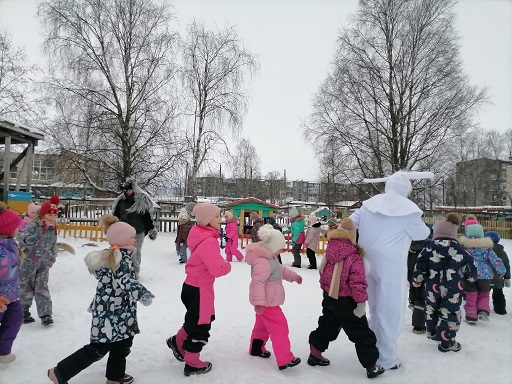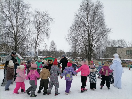 На участке ул. Красноармейская, 16 праздник подготовили инструктор по физической культуре Андреева Мария Ивановна и музыкальный руководитель Дмитриева Ирина Борисовна. После музыкальной разминки дети играли в зимние игры, танцевали, участвовали в эстафетах "Провези игрушку на санках", "Хоккей", "Лыжные гонки", "Кто дальше бросит валенок", "Меткие стрелки". Дети проявили физические качества в игровых ситуациях, получили заряд бодрости и веселого настроения.