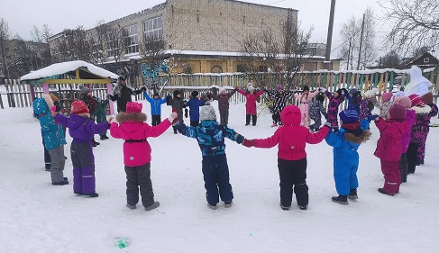 Зима - веселое время года для детей. Столько забав - не перечесть! В каждом здании детского сада прошли праздники на прогулке с эстафетами, ритмическими композициями.