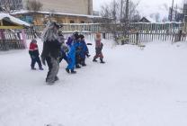 На участке ул. Ленина 5 спортивное развлечение прошло для всех групп, подготовила его инструктор по физической культуре Борисевич Наталья Леонидовна. Дети с удовольствием соревновались, играли, катались на лыжах, на ватрушках. Все получили положительные эмоции от общения друг с другом.