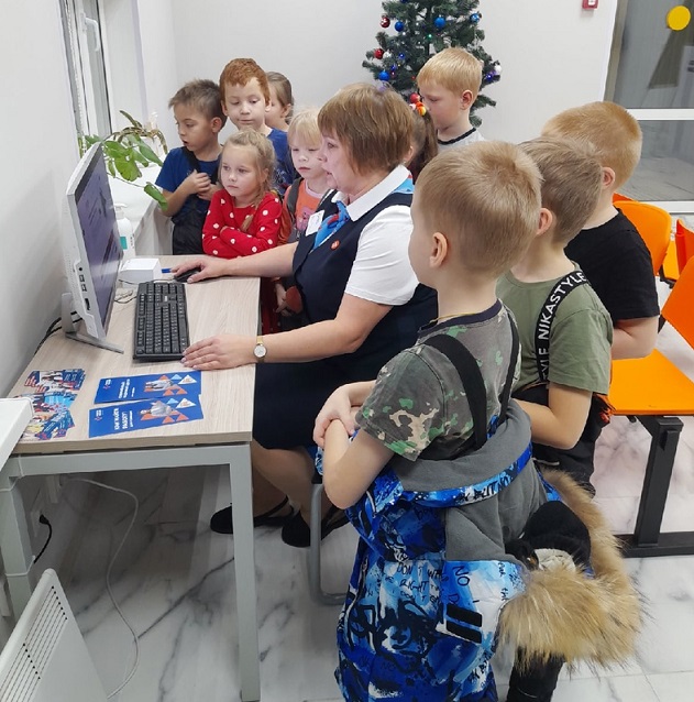 23 декабря ребята подготовительной группы "Лучики" (воспитатель Карпова Валентина Александровна) побывали в обновлённом Кадровом центре. Наталья Викторовна Андреева рассказала о работе центра: здесь с помощью компьютера можно познакомиться с вакансиями, которые особо востребованы в нашем городе и районе. В центре проводятся встречи молодёжных, женских клубов, а также инклюзивные мероприятия. В процессе экскурсии нам показали помещения центра, в которых организованно удобное зонирование пространства для разных категорий граждан. Также здесь есть детский уголок. Накануне открытия центра мы с ребятами приняли участие в выставке рисунков "Профессии моих родителей". В Кадровом центре ребята рассмотрели выставку и рассказали, кем работают их родители. За активное участие дети получили благодарности и новогодний сладкий приз.